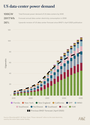 Velká revize směrem nahoru k prognózám poptávky po elektřině v amerických datových centrech