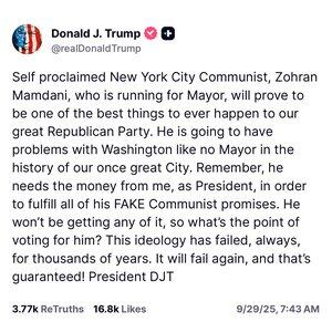 Hlas pro Zohrana Mamdaniho by byl hlasem proti tomu, aby New York dostával federální fondy od Trumpova Bílého domu.
