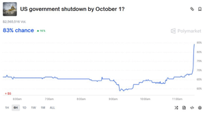 PRAVDĚPODOBNOST UZAVŘENÍ AMERICKÉ VLÁDY JE NYNÍ 83 %