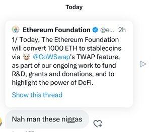 Ein weit links stehender weißer Typ, der zum ersten Mal überhaupt Schimpfwörter im Chat fallen lässt, wegen….Ethereum Foundation