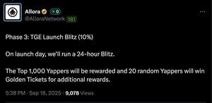 Recompensará a los 1,000 mejores Yappers en ese día (día de TGE)