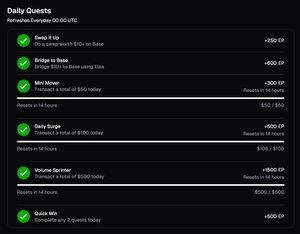 Un recordatorio para completar tus misiones diarias en @HeyElsaAI para EP si estás cultivando para su airdrop, ten en cuenta que hay una tarifa de plataforma del 0.35% por cada transacción realizada