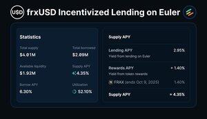 Insentif sekarang tersedia untuk pemberi pinjaman frxUSD di @eulerfinance, dengan banyak likuiditas yang tersedia untuk pinjaman.