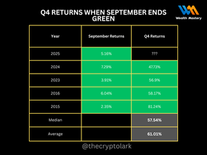Secara historis, ketika September ditutup hijau, Q4 biasanya berubah menjadi super mega bullish.