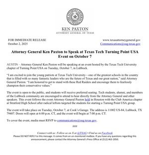 NIEUW: Ik zal spreken op een Texas Tech Turning Point USA evenement op 7 oktober.