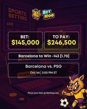 Hogger właśnie postawił 145 000 $ na Barcelonę -143 [1.70] przeciwko PSG.
