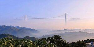 Esta ponte é tão grande que parece grande mesmo em relação à paisagem.
