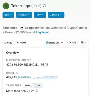 Parabéns à comunidade $PEPE por atingir 487.000 detentores na cadeia $ETH.