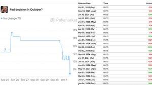 NOVO: CHANCE DE O FED DOS EUA NÃO ALTERAR AS TAXAS EM OUTUBRO CAIR PARA 7% NO POLIMERCADO - APÓS A DIVULGAÇÃO DA MUDANÇA DE EMPREGO NÃO AGRÍCOLA DA ADP