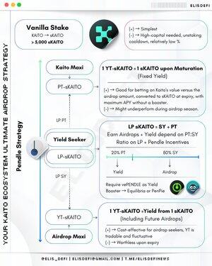 Para capital menor (<$5.000), considere comprar YT-KAITO no @pendle_fi. Cada YT representa o rendimento de 1 sKAITO, incluindo todos os pontos futuros e airdrops de KAITO em stake.
