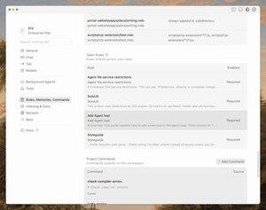 As regras podem agora ser partilhadas por toda a sua equipa. Isso inclui regras do Bugbot para revisões de código automatizadas.