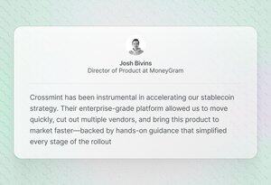 Potenciado por carteiras Crossmint e orquestração de stablecoins.