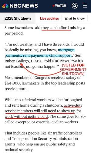 DEZGUSTĂTOR. Senatorul Gallego nu va renunța la un ban din propriul salariu, dar a votat cu bucurie pentru închiderea guvernului, forțându-i pe cei care ne protejează națiunea să-și facă griji dacă pot păstra un acoperiș deasupra capului.