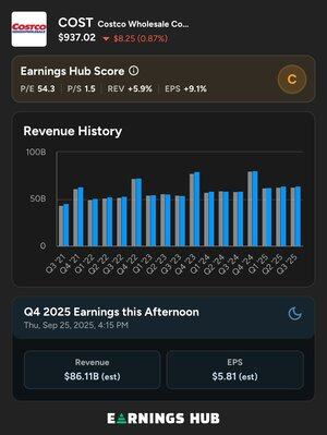 Costco $COST повідомляє про прибутки сьогодні після закриття ринків, Wall ST очікує цифри