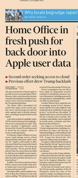 Міністерство внутрішніх справ Великої Британії знову наполягає на тому, щоб відкрити чорний хід у дані користувачів Apple, вимагаючи доступу до хмари.