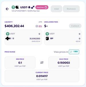 Chẳng hạn, trước khi một dự án tăng giá, họ sẽ điều chỉnh một pool thanh khoản hẹp trước đó từ khoảng 0.01-0.015 lên trên 0.1, vượt xa mức giá hiện tại, khiến cho tính thanh khoản trong khoảng giá hiện tại giảm nhanh chóng, từ đó dễ dàng hơn để tăng giá.