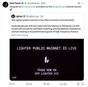Robinhood 的首席执行官转发了更轻量的主网公告 👀