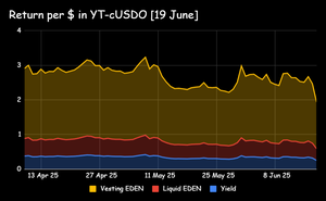 随着$EDEN交易价格为60美分,每位购买YT-cUSDO(6月19日)的买家都以盈利结束了他们的旅程✅ 虽然80%的EDEN正在解锁,但基础收益和流动的EDEN足以收回57-87%的本金😋 让其余部分自由运行或在期货上做空(什么时候)以锁定利润🤫 PENDLE