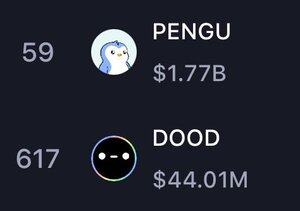 我正在關注的一個關鍵指標是@pudgypenguins與@doodles的比例。